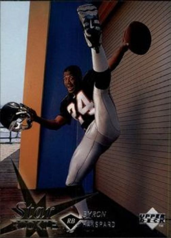 Byron Hanspard's Football cards are available in at least 14 sets. Byron Hanspard's biggest 7-day price movers are 1997 Upper Deck #21 Base, 1997 Upper Deck Collector's Choice #C29a You Crash the Game, and 1997 Upper Deck Collector's Choice #333 Base.