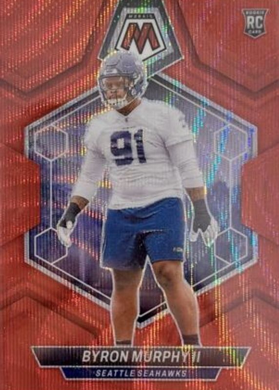 Byron Murphy II's Football cards are available in at least 14 sets. Byron Murphy II's biggest 7-day price movers are 2024 Prizm #317 Lazer, 2024 Mosaic #316 Red Wave /9, and 2024 Mosaic #316 Reactive Blue.