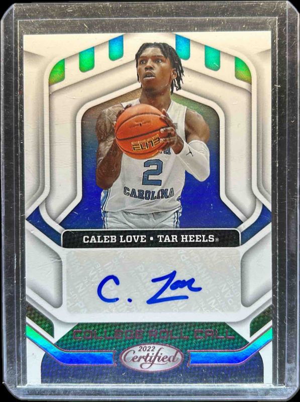 Caleb Love's Basketball cards are available in at least 16 sets. Caleb Love's biggest 7-day price movers are 2022 Chronicles Draft Picks #CRC-CLO College Roll Call Autographs - Pink, 2022 Chronicles Draft Picks #CRC-CLO College Roll Call Autographs - Blue Ice /22, and 2022 Chronicles Draft Picks #CRC-CLO College Roll Call Autographs - Bronze.