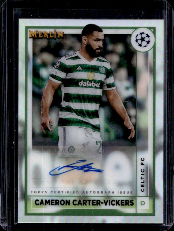 Cameron Carter-Vickers' Soccer cards are available in at least 18 sets. Cameron Carter-Vickers' biggest 7-day price movers are 2022 Topps Merlin Chrome UEFA Club Competitions #AC-CCV Autographs, 2022 Topps Merlin Chrome UEFA Club Competitions #AC-CCV Autographs - Blue Refractor /75, and 2022 Topps Merlin Chrome UEFA Club Competitions #AC-CCV Autographs - Mojo Refractor /99.