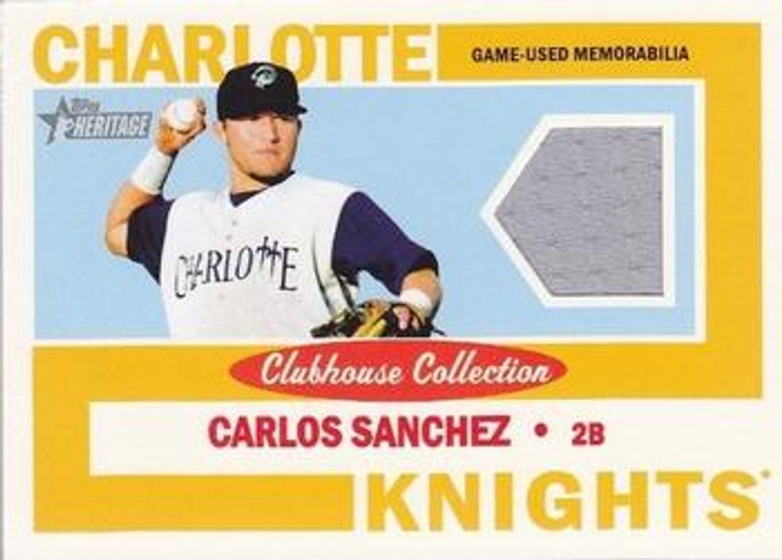 Carlos Sanchez's Baseball cards are available in at least 4 sets. Carlos Sanchez's biggest 7-day price movers are 2013 Topps Heritage Minor League #CCR-CSA Clubhouse Collection Relics, 2013 Topps Heritage Minor League #211 Printing Plates Cyan /1, and 2013 Topps Heritage Minor League #211 Printing Plates Yellow /1.