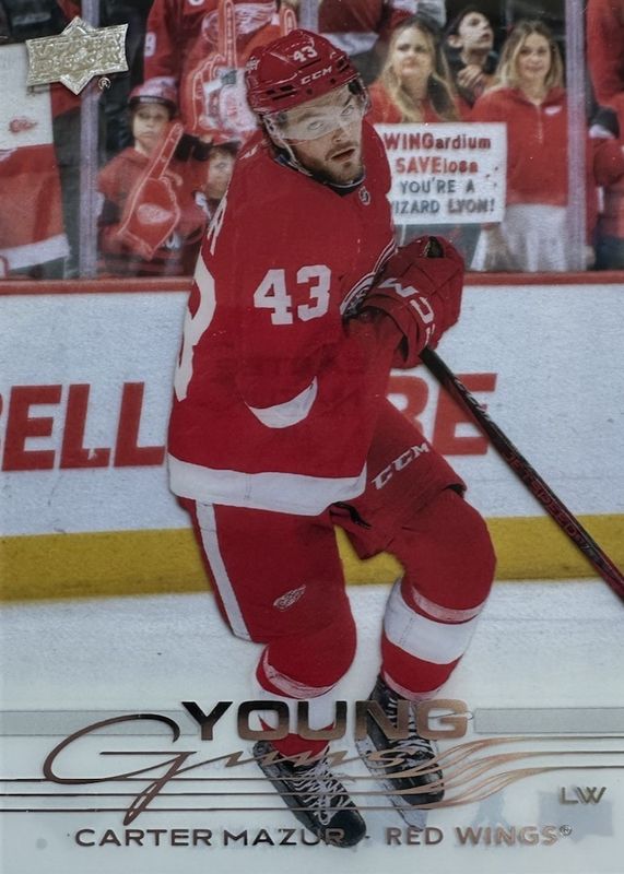 Carter Mazur's Hockey cards are available in at least 4 sets. Carter Mazur's biggest 7-day price movers are 2025 Upper Deck #204 Young Guns - Clear Cut, 2025 Upper Deck #204 Young Guns - Deluxe /250, and 2025 Upper Deck #204 Young Guns - Exclusives /100.