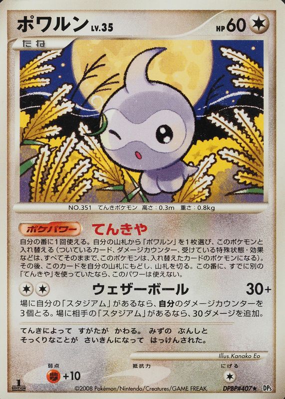 Castform's Pokemon cards are available in at least 10 sets. Castform's biggest 7-day price movers are 2022 Sword & Shield: Lost Origin #TG11/TG30 Trainer Gallery, 2008 Japanese Diamond & Pearl: Cry From the Mysterious #407 1st Edition, and 2004 EX: Hidden Legends #030/101 Base.