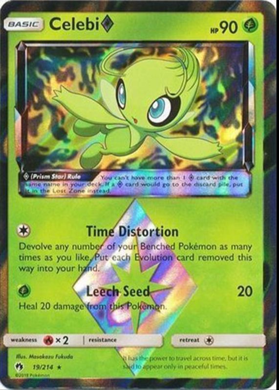 Celebi Prism Star's Pokemon cards are available in at least 2 sets. Celebi Prism Star's biggest 7-day price movers are 2018 Japanese Sun & Moon: Super-Burst Impact #015/095 Holo, and 2018 Sun & Moon: Lost Thunder #019/214 Holo.