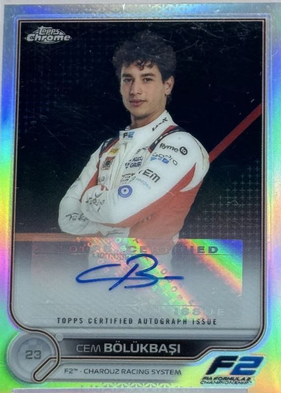 Cem Bolukbasi's Racing cards are available in at least 2 sets. Cem Bolukbasi's biggest 7-day price movers are 2022 Topps Chrome Formula 1 #CAC-CB Autographs, 2022 Topps Turbo Attax Formula 1 #EX-8 Exclusive, and 2022 Topps Chrome Formula 1 #CAC-CB Autographs - Red Refractor /5.