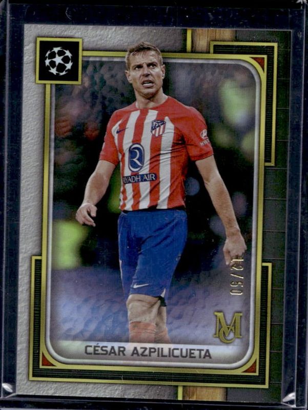 Cesar Azpilicueta's Soccer cards are available in at least 45 sets. Cesar Azpilicueta's biggest 7-day price movers are 2023 Topps Museum Collection UEFA Club Competitions #50 Gold /50, 2023 Topps Museum Collection UEFA Club Competitions #50 Black Diamond /10, and 2023 Topps Museum Collection UEFA Club Competitions #50 Base.