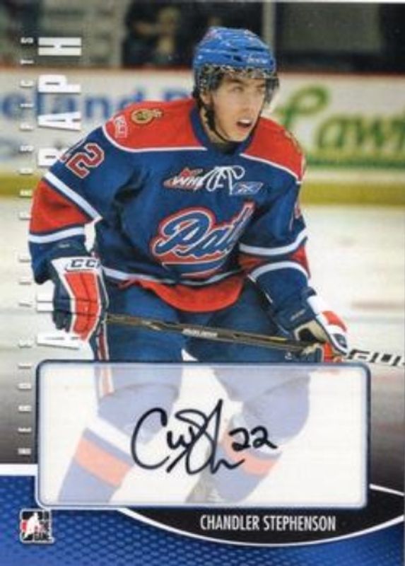 Chandler Stephenson's Hockey cards are available in at least 63 sets. Chandler Stephenson's biggest 7-day price movers are 2012 In The Game Heroes & Prospects #A-CS Autographs, 2012 In The Game Heroes & Prospects #138 Base, and 2020 O-Pee-Chee #91 Base.