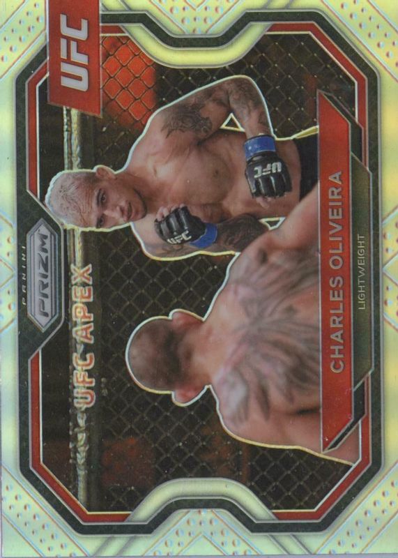 Charles Oliveira's MMA cards are available in at least 16 sets. Charles Oliveira's biggest 7-day price movers are 2021 Prizm UFC #174 Silver, 2024 Topps Chrome UFC #42 Superfractor /1, and 2022 Prizm UFC #189 Gold /10.