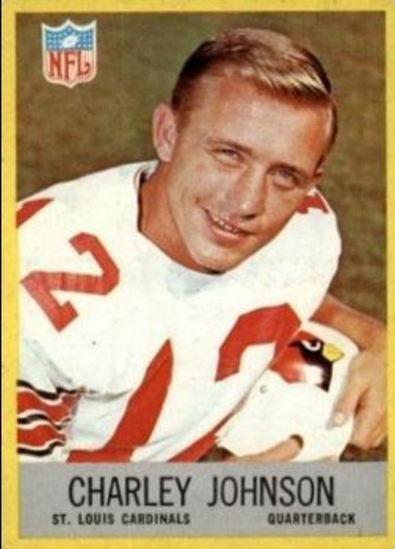 Charley Johnson's Football cards are available in at least 7 sets. Charley Johnson's biggest 7-day price movers are 1967 Philadelphia #161 Base, 1969 Topps #247 Base, and 1971 Topps #85 Base.