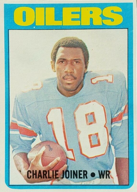 Charlie Joiner's Football cards are available in at least 13 sets. Charlie Joiner's biggest 7-day price movers are 1972 Topps #244 Base, 2019 Plates & Patches #107 2019 Legacy - Printing Plates Black /1, and 2019 Plates & Patches #107 2019 Legacy - Printing Plates Yellow /1.