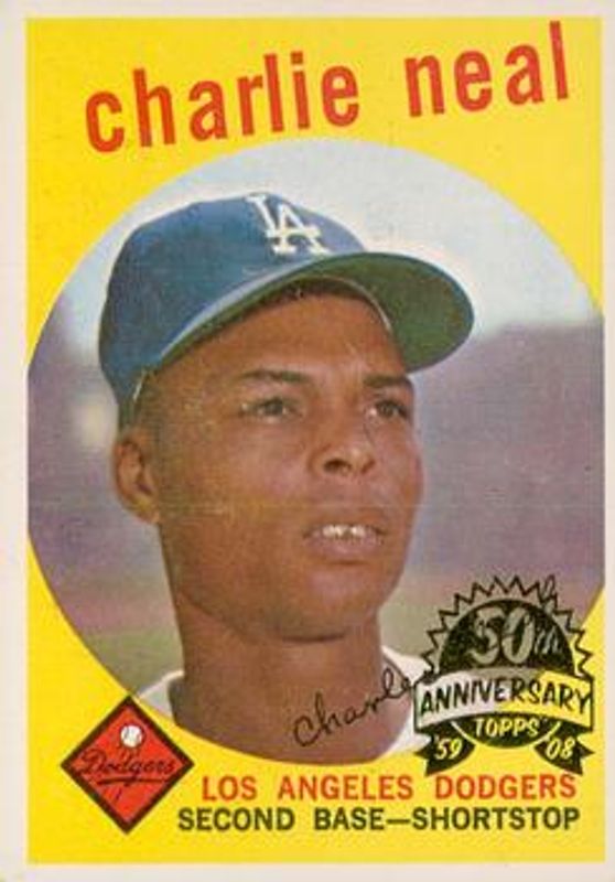 Charlie Neal's Baseball cards are available in at least 13 sets. Charlie Neal's biggest 7-day price movers are 2008 Topps Heritage #427 50th Anniversary Buybacks, 2009 Topps Heritage #155 50th Anniversary Buybacks, and 2010 Topps Heritage #30 Framed Buyback Stamps.