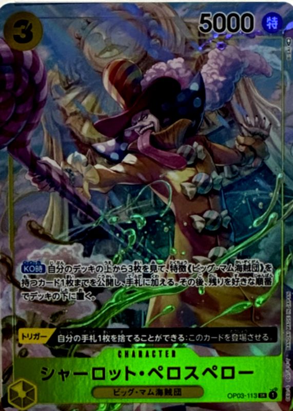 Charlotte Perospero's One Piece cards are available in at least 1 sets. Charlotte Perospero's biggest 7-day price movers are 2023 Pillars of Strength #OP03-113 Super Rare (Alternate Art).