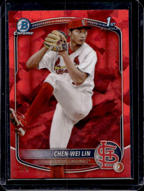 Chen-Wei Lin's Baseball cards are available in at least 2 sets. Chen-Wei Lin's biggest 7-day price movers are 2025 Bowman #CPA-CL Chrome Prospect Auto (1st), 2025 Bowman #CPA-CL Chrome Prospect Auto - Black Refractor /10 (1st), and 2025 Bowman #CPA-CL Chrome Prospect Auto - Black X-Fractor /10 (1st).