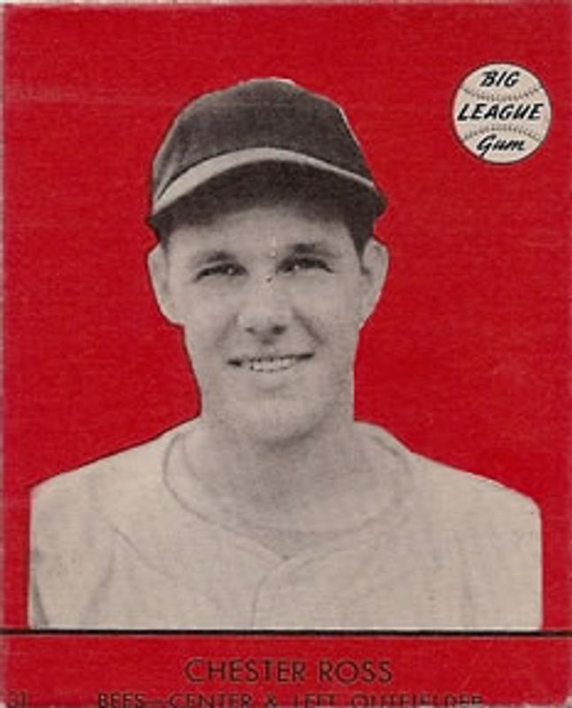Chester Ross' Baseball cards are available in at least 1 sets. Chester Ross' biggest 7-day price movers are 1941 Goudey R324 #31d Base, 1941 Goudey R324 #31a Base, and 1941 Goudey R324 #31b Base.