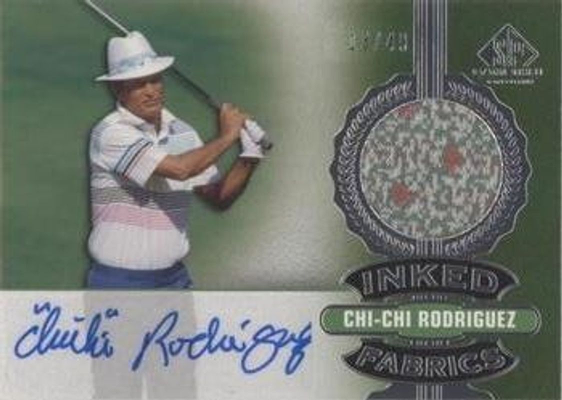 Chi-Chi Rodriguez's Golf cards are available in at least 6 sets. Chi-Chi Rodriguez's biggest 7-day price movers are 2021 SP Game Used #IF-RO Inked Fabrics /49, 2021 SP Game Used #IF-RO Inked Fabrics - Spectrum /5, and 2021 SP Game Used #ID-RO Inked Drivers.
