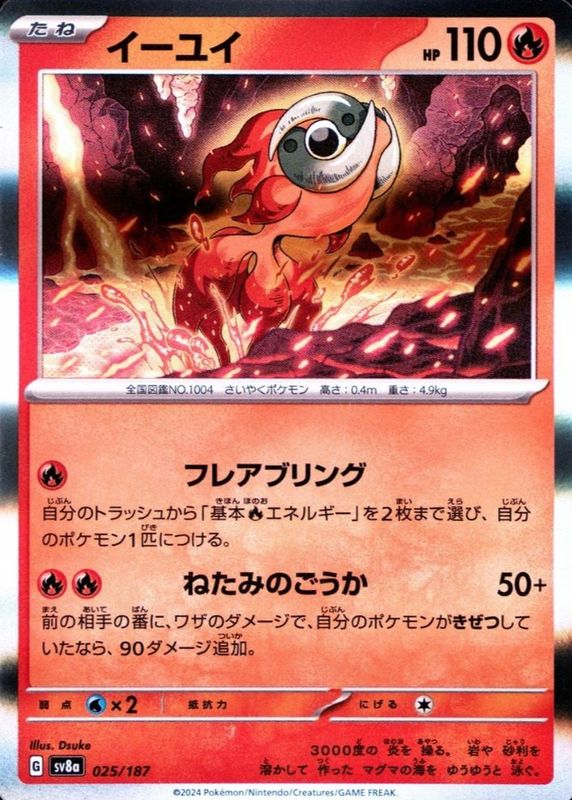 Chi-Yu's Pokemon cards are available in at least 3 sets. Chi-Yu's biggest 7-day price movers are 2024 Japanese Scarlet & Violet: Terastal Fest ex #025/187 Holo, 2024 Japanese Scarlet & Violet: Terastal Fest ex #025/187 Reverse Holo, and 2024 Japanese Scarlet & Violet: Terastal Fest ex #025/187 Master Ball Reverse Holo.