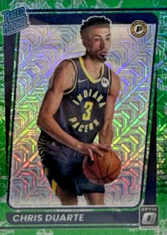 Chris Duarte's Basketball cards are available in at least 35 sets. Chris Duarte's biggest 7-day price movers are 2021 Optic #173 Choice Dragon /(SSP), 2021 Prizm #315 Red Ice, and 2021 Select #41 Concourse Blue Prizm.