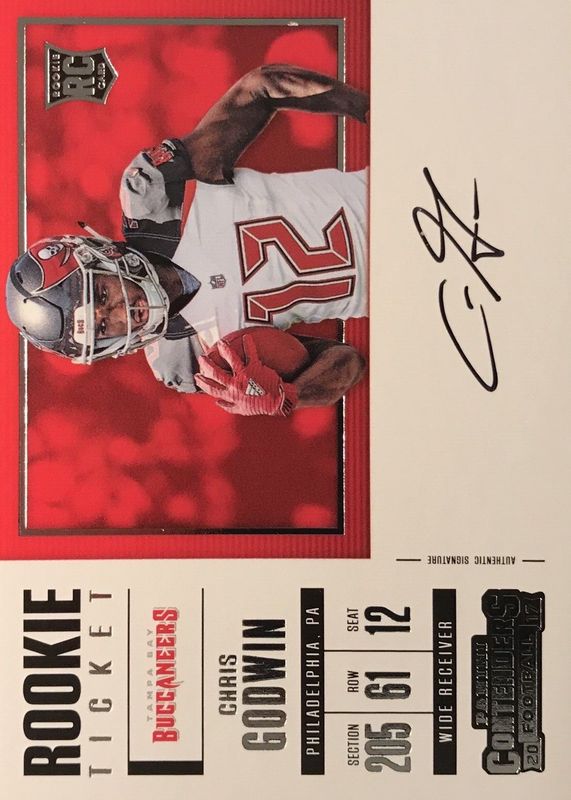 Chris Godwin's Football cards are available in at least 55 sets. Chris Godwin's biggest 7-day price movers are 2017 Contenders #377 Rookie Ticket Auto Variation, 2018 Unparalleled #BF-CG Bright Futures - Whirl /100, and 2018 Unparalleled #BF-CG Bright Futures - Astral /200.