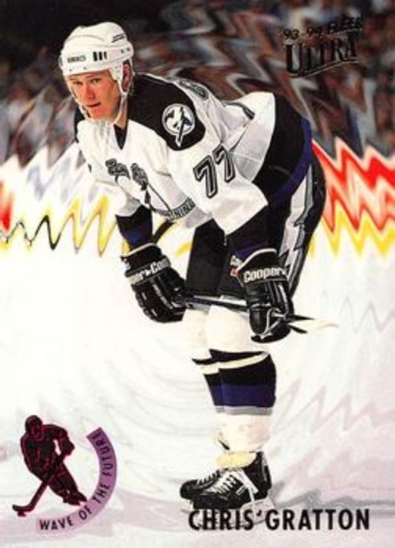 Chris Gratton's Hockey cards are available in at least 55 sets. Chris Gratton's biggest 7-day price movers are 1993 Fleer Ultra #5 Wave of the Future, 1994 Fleer Ultra #4 All Rookies, and 1994 Fleer Ultra #4 All Rookies Sparkling Silver.