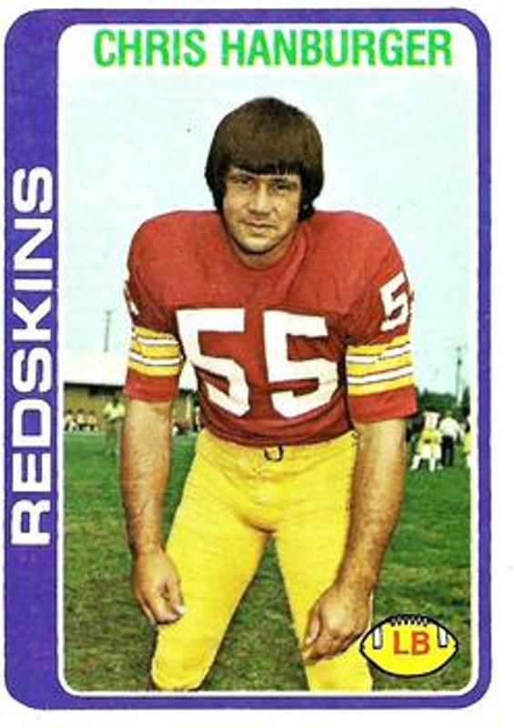 Chris Hanburger's Football cards are available in at least 17 sets. Chris Hanburger's biggest 7-day price movers are 1978 Topps #495 Base, 2018 Playoff #15 Hidden Gems - Touchdown /1, and 2018 Playoff #15 Hidden Gems - Gold.