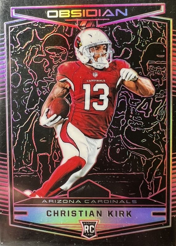 Christian Kirk's Football cards are available in at least 31 sets. Christian Kirk's biggest 7-day price movers are 2018 Obsidian #113 Electric Etch Purple /75, 2018 Prizm #219 Hyper /275, and 2018 Select #65 Concourse White /75.
