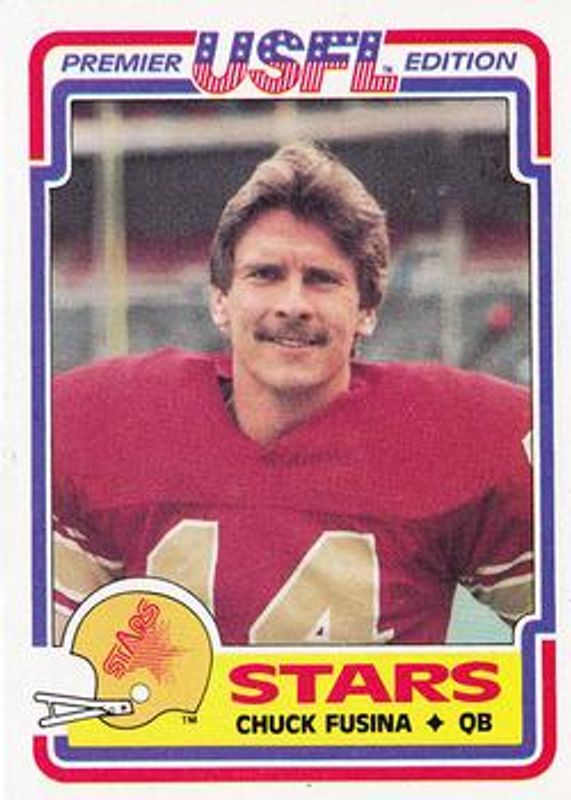Chuck Fusina's Football cards are available in at least 2 sets. Chuck Fusina's biggest 7-day price movers are 1984 Topps USFL #101 Base, and 1985 Topps USFL #15 Base.