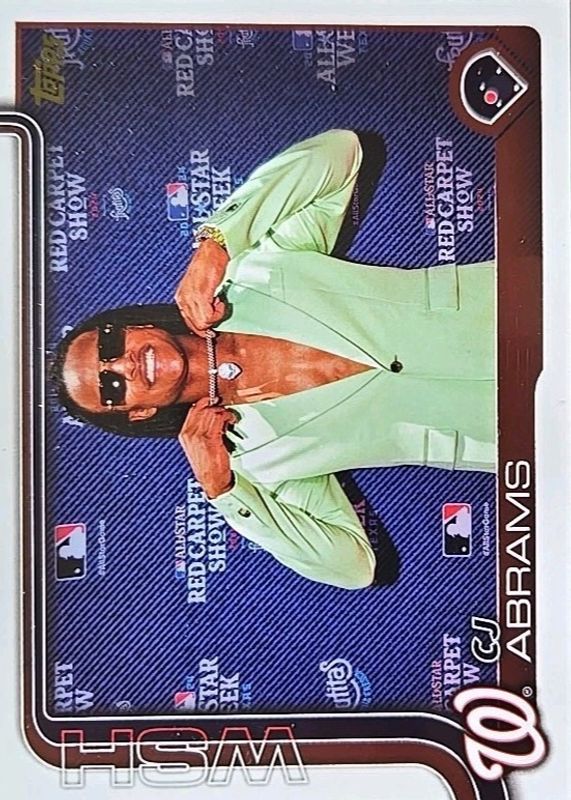 CJ Abrams' Baseball cards are available in at least 75 sets. CJ Abrams' biggest 7-day price movers are 2022 Topps Chrome Update #USC3 Purple Refractor, 2025 Topps #122 Golden Mirror Image Variation /(SSP), and 2022 Topps Update #US34 Black /71.