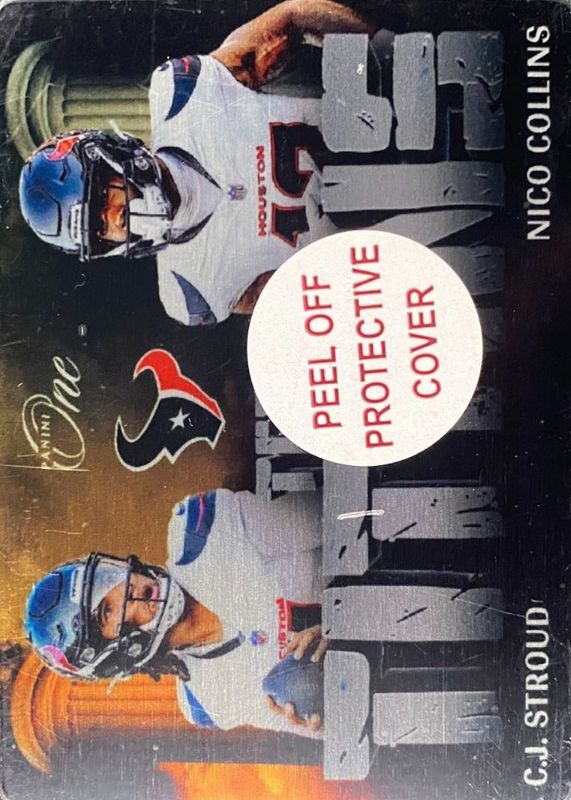 CJ Stroud / Nico Collins' Football cards are available in at least 1 sets. CJ Stroud / Nico Collins' biggest 7-day price movers are 2024 One #TT-HOU Team Titans /(SSP).