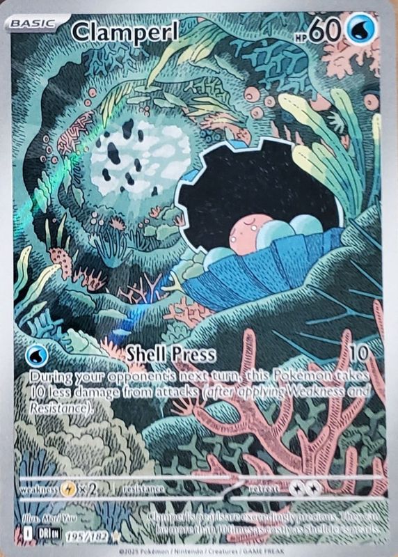 Clamperl's Pokemon cards are available in at least 10 sets. Clamperl's biggest 7-day price movers are 2025 Scarlet & Violet: Destined Rivals #195/182 Illustration Rare, 2006 EX: Legend Maker #51/92 Reverse Holo, and 2007 Japanese Diamond & Pearl: Dawn Dash #424 1st Edition.