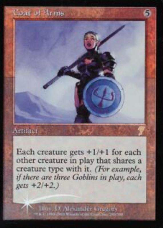 Coat of Arms' Magic: The Gathering cards are available in at least 2 sets. Coat of Arms' biggest 7-day price movers are 2001 Seventh Edition #290 Foil, and 1998 Exodus #131 Base.