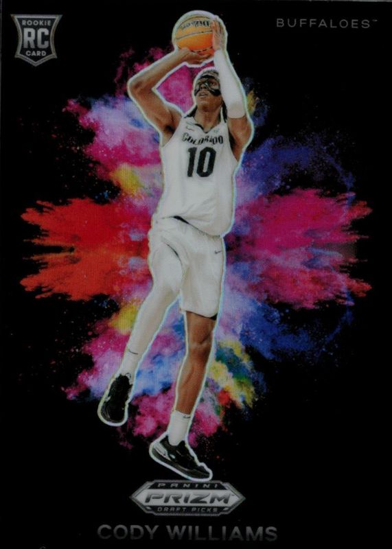Cody Williams' Basketball cards are available in at least 32 sets. Cody Williams' biggest 7-day price movers are 2024 Mosaic #207 Blue Fluorescent /75, 2024 Prizm Draft Picks #15 Black Color Blast /(SSP), and 2024 One and One #30 Downtown /(SSP).