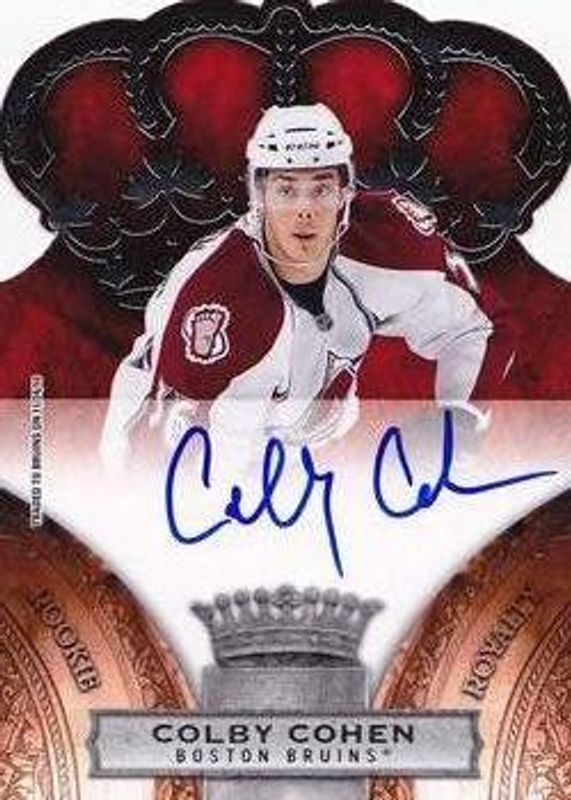 Colby Cohen's Hockey cards are available in at least 7 sets. Colby Cohen's biggest 7-day price movers are 2010 Crown Royale #152 Base /499, 2010 Upper Deck The Cup #ULT-64 Printing Plates Ultimate Collection - Black /1, and 2010 Upper Deck The Cup #SPGU-136 Printing Plates SP Game Used Yellow /1.