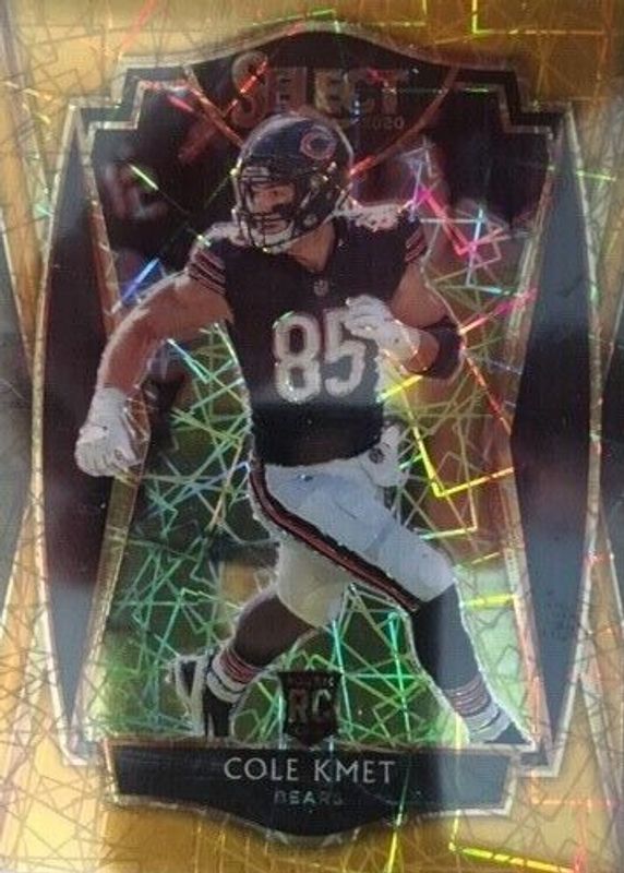 Cole Kmet's Football cards are available in at least 30 sets. Cole Kmet's biggest 7-day price movers are 2020 Select #174 Premier Level Gold /10, 2020 Optic #RKA-CK Rookie Kings Autographs (/49), and 2020 Origins #RA-CK Rookie Autographs.