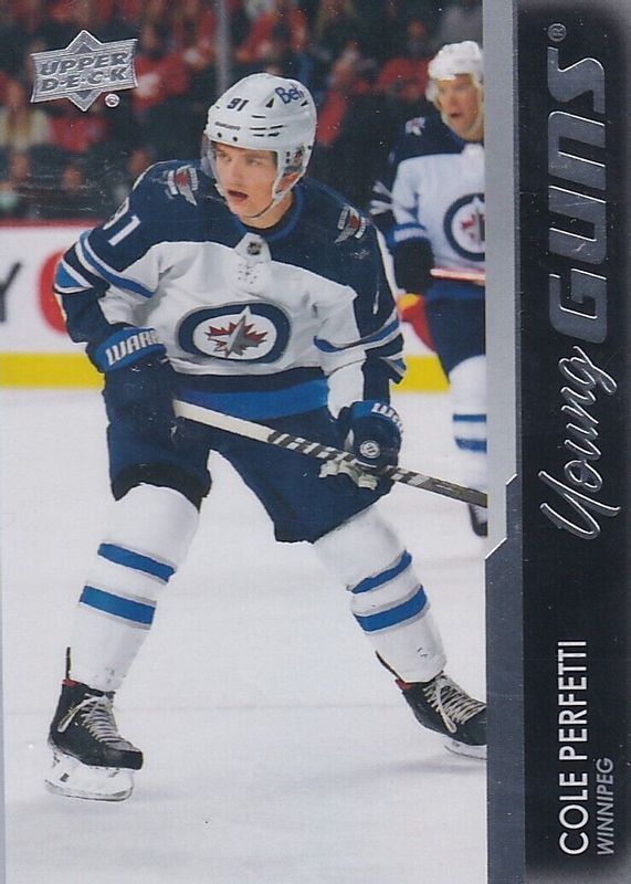 Cole Perfetti's Hockey cards are available in at least 55 sets. Cole Perfetti's biggest 7-day price movers are 2021 Upper Deck Ovation #WP-39 World Premiere - Red /199, 2021 Upper Deck Ovation #107 Printing Plates Magenta /1, and 2021 Upper Deck Credentials #SGR16 Speed of the Game Rookies.