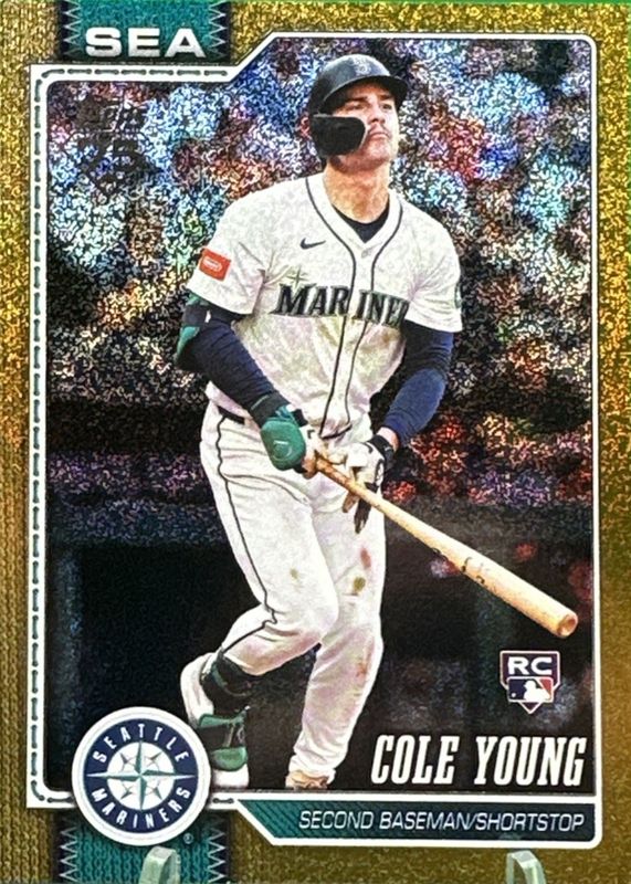 Cole Young's Baseball cards are available in at least 23 sets. Cole Young's biggest 7-day price movers are 2026 Topps #129 Rainbow Foil, 2026 Topps #129 Sandglitter, and 2026 Topps #129 Diamante Foil.