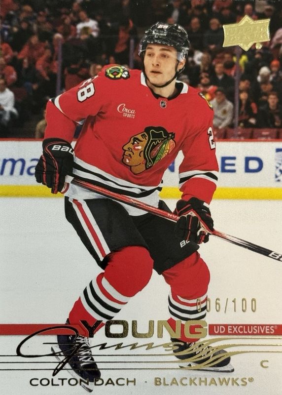 Colton Dach's Hockey cards are available in at least 17 sets. Colton Dach's biggest 7-day price movers are 2025 Upper Deck #218 Young Guns - Exclusives /100, 2021 Upper Deck CHL #28 Printing Plates Yellow /1, and 2021 Upper Deck CHL #28 Printing Plates Black /1.