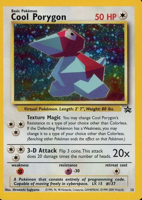 Cool Porygon's Pokemon cards are available in at least 1 sets. Cool Porygon's biggest 7-day price movers are 2000 Wizards Black Star Promo #15 Nintendo 64 Bundle.
