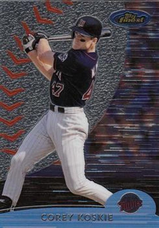 Corey Koskie's Baseball cards are available in at least 25 sets. Corey Koskie's biggest 7-day price movers are 2000 Topps Finest #34 Base, 2000 Topps Finest #34 Gold Refractor /100, and 2000 Topps Finest #34 Refractor /1000.