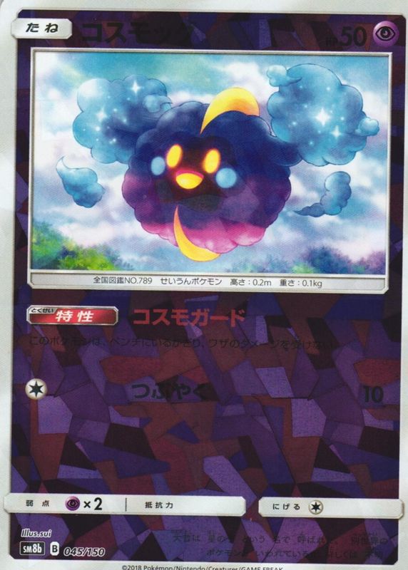 Cosmog's Pokemon cards are available in at least 2 sets. Cosmog's biggest 7-day price movers are 2018 Japanese Sun & Moon: GX Ultra Shiny #045/150 Reverse Holo, 2019 Japanese Sun & Moon: Alter Genesis #036/095 Base, and 2019 Japanese Sun & Moon: Alter Genesis #037/095 Base.