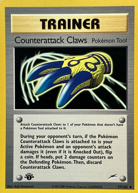 Counterattack Claws' Pokemon cards are available in at least 1 sets. Counterattack Claws' biggest 7-day price movers are 2002 Neo Destiny #97/105 1st Edition, and 2002 Neo Destiny #97/105 Unlimited.