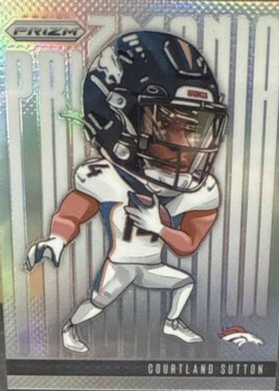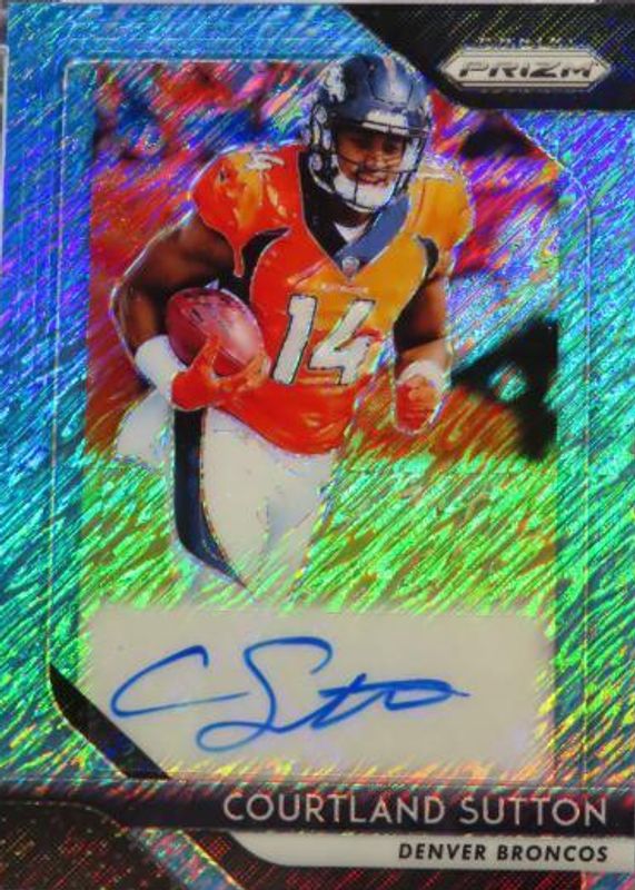 Courtland Sutton's Football cards are available in at least 40 sets. Courtland Sutton's biggest 7-day price movers are 2018 Prizm #RA-CS Rookie Autographs - Neon Green Pulsar, 2018 Prizm #RA-CS Rookie Autographs - Pink, and 2018 Optic #162 Orange /199.