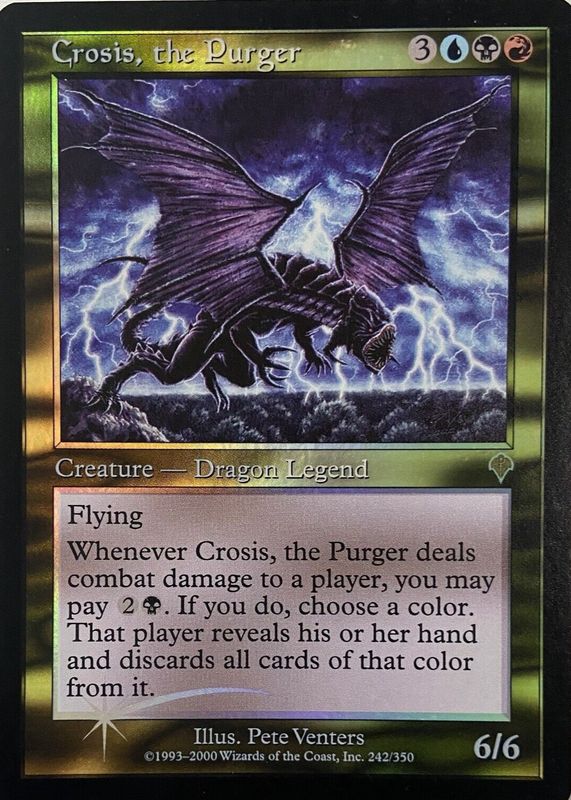 Crosis, the Purger's Magic: The Gathering cards are available in at least 1 sets. Crosis, the Purger's biggest 7-day price movers are 2000 Invasion #242 Foil, and 2000 Invasion #242 Base.