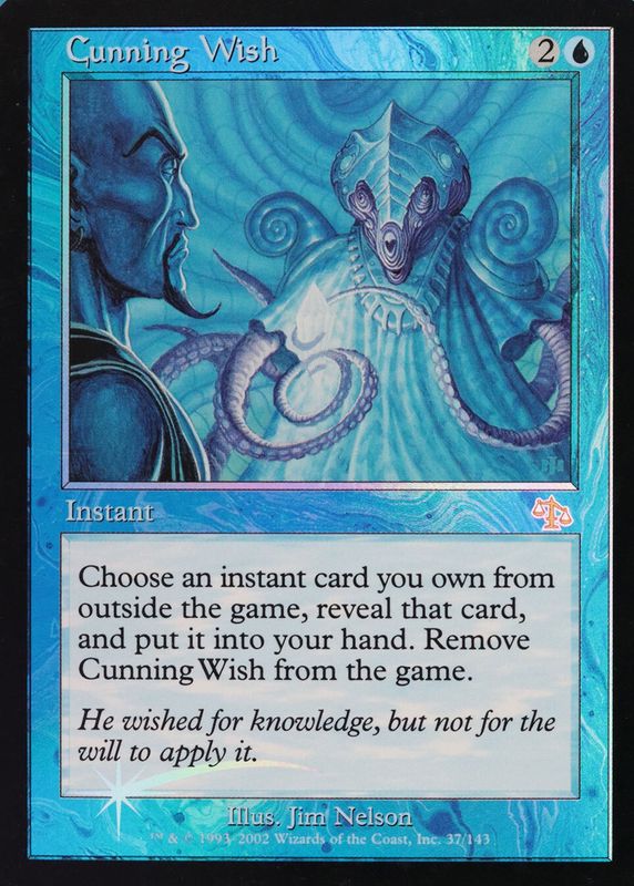 Cunning Wish's Magic: The Gathering cards are available in at least 1 sets. Cunning Wish's biggest 7-day price movers are 2002 Judgment #37 Foil, and 2002 Judgment #37 Base.