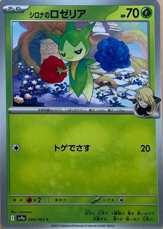 Cynthia's Roselia's Pokemon cards are available in at least 3 sets. Cynthia's Roselia's biggest 7-day price movers are 2025 Japanese Scarlet & Violet: Heat Wave Arena #004/063 Base, 2025 Japanese Mega: Mega Dream ex #009/193 Energy Reverse Holo, and 2025 Japanese Mega: Mega Dream ex #009/193 Poke Ball Reverse Holo.