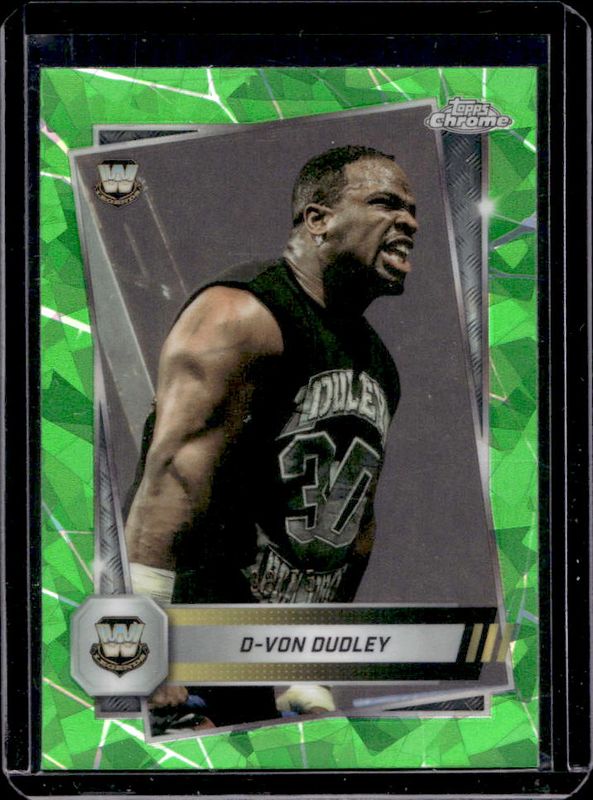D-Von Dudley's Wrestling cards are available in at least 6 sets. D-Von Dudley's biggest 7-day price movers are 2025 Topps Chrome WWE Sapphire Edition #115 Base Chrome - Green Refractor /75, 2025 Topps Chrome WWE Sapphire Edition #115 Base Chrome - Orange Refractor /25, and 2025 Topps Chrome WWE Sapphire Edition #115 Base Chrome - Purple Refractor /10.