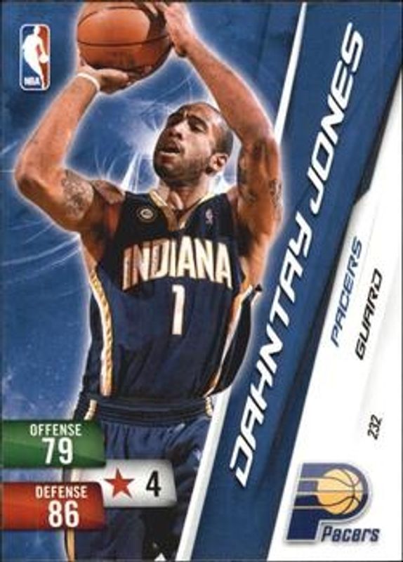 The biggest 30-day change Dahntay Jones cards are 2010 Panini Adrenalyn XL #232 Base, 2010 Prestige #41 Bonus Shots Gold /249, and 2010 Prestige #41 Bonus Shots Purple /49.