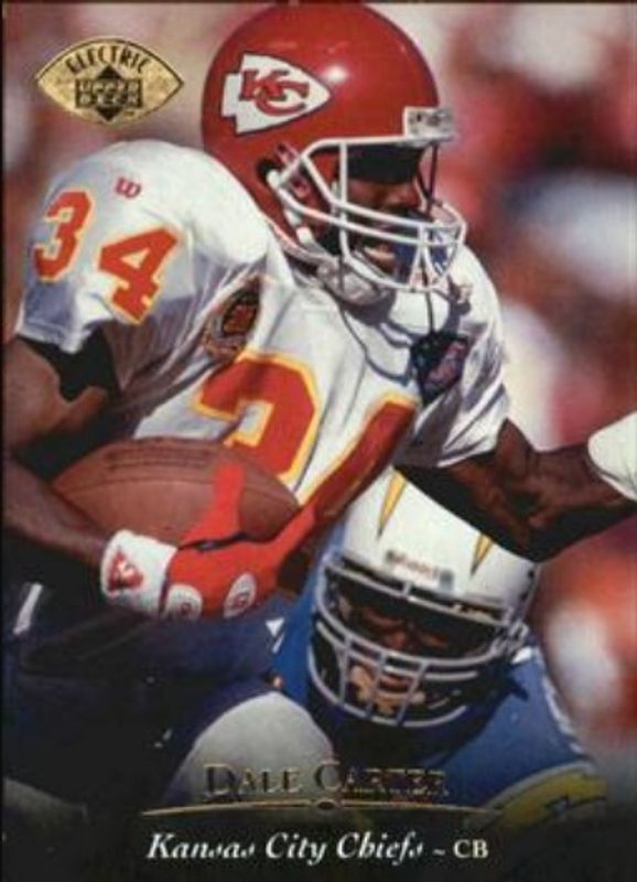 Dale Carter's Football cards are available in at least 29 sets. Dale Carter's biggest 7-day price movers are 1995 Upper Deck #195 Electric Gold, 1995 Upper Deck #195 Base, and 1995 Upper Deck Collector's Choice #229 Platinum Player's Club.