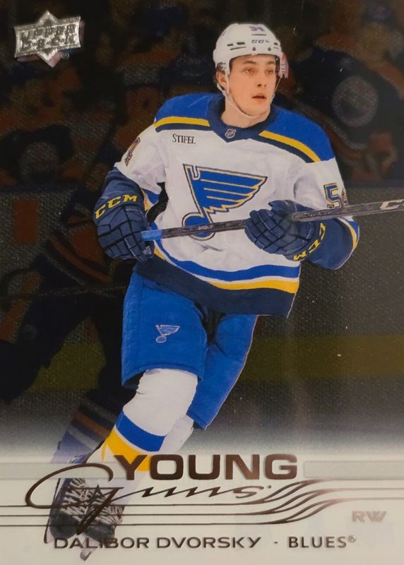Dalibor Dvorsky's Hockey cards are available in at least 4 sets. Dalibor Dvorsky's biggest 7-day price movers are 2025 Upper Deck #226 Young Guns - Clear Cut, 2025 Upper Deck #226 Young Guns - Deluxe /250, and 2025 Upper Deck #226 Young Guns - Exclusives /100.