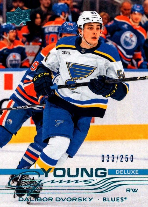 Dalibor Dvorsky's Hockey cards are available in at least 6 sets. Dalibor Dvorsky's biggest 7-day price movers are 2025 Upper Deck #226 Young Guns Base, 2025 Upper Deck #226 Young Guns - Deluxe /250, and 2025 Upper Deck #226 Young Guns - Outburst Silver.