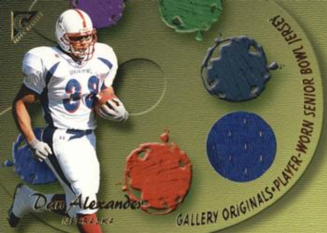 Dan Alexander's Football cards are available in at least 6 sets. Dan Alexander's biggest 7-day price movers are 2001 Topps Gallery #GO-DA Originals Relics, 2001 Topps Gallery #119 Base, and 2001 Topps Gallery #119 Press Plates Yellow /1.